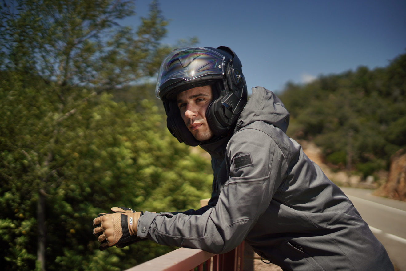 ADVANT-X Fは通常おでこあたりで止まるバーを口頭部まで回す、ひとつの”儀式”も楽しめるヘルメットです。所有したライダーのみぞ知る、高揚感といいましょうか。「かっこいいだろ~」と自慢できるヘルメットであることは間違いありません。